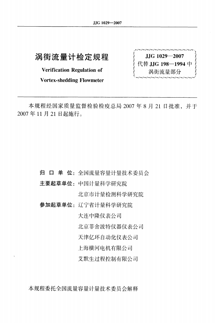 JJG1029-2007涡街流量计检定规程348072@abc4个月前发布关注私信0.70MB18页033JJG1029-2007涡街流量计检定规程此内容为付费资源,请付费后查看¥13¥23黄金会员免费钻石会员免费立即购买您当前未登录!建议登陆后购买,可保存购买订单付费资源 第1页 / 共18页 第2页 / 共18页 试读已结束,还剩16页,您可下载完整版后进行离线阅读 THE END标准规范 文本预览 可可G中华人民共和国国家计量检定规程JJG1029-2007涡街流量计Vortex-shedding Flowmeter2007-08-21发布2007-11-21实施国家质量监督检验检疫总局发布 查看更多 收起部分 喜欢就支持一下吧收藏