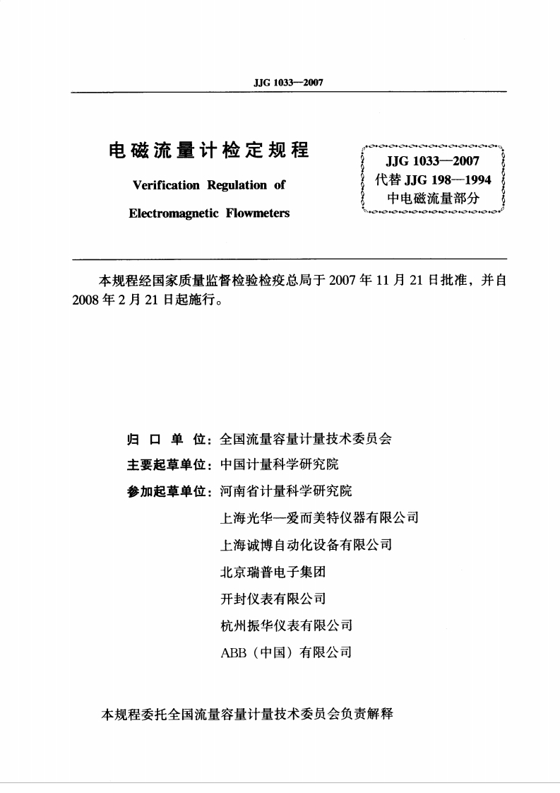 JJG1033-2007电磁流量计检定规程(清)348072@abc4个月前发布关注私信1.71MB21页026JJG1033-2007电磁流量计检定规程(清)此内容为付费资源,请付费后查看¥13¥23黄金会员免费钻石会员免费立即购买您当前未登录!建议登陆后购买,可保存购买订单付费资源 第1页 / 共21页 第2页 / 共21页 试读已结束,还剩19页,您可下载完整版后进行离线阅读 THE END标准规范 文本预览 可G中华人民共和国国家计量检定规程JJG1033一2007电磁流量计Electromagnetic Flowmeters2007-11-21发布2008-02-21实施国家质量监督检验检疫总局发布 查看更多 收起部分 喜欢就支持一下吧收藏