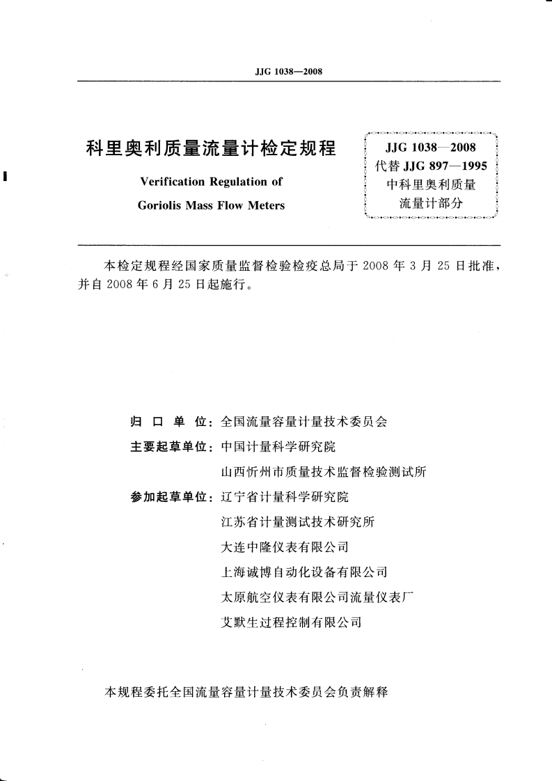 JJG1038-2008科里奥利质量流量计348072@abc4个月前发布关注私信0.87MB19页020JJG1038-2008科里奥利质量流量计此内容为付费资源,请付费后查看¥13¥23黄金会员免费钻石会员免费立即购买您当前未登录!建议登陆后购买,可保存购买订单付费资源 第1页 / 共19页 第2页 / 共19页 试读已结束,还剩17页,您可下载完整版后进行离线阅读 THE END标准规范 文本预览 J可G中华人民共和国国家计量检定规程JJG1038一2008科里奥利质量流量计Goriolis Mass Flow Meters2008-03-25发布2008-06-25实施国家质量监督检验检疫总局发布 查看更多 收起部分 喜欢就支持一下吧收藏