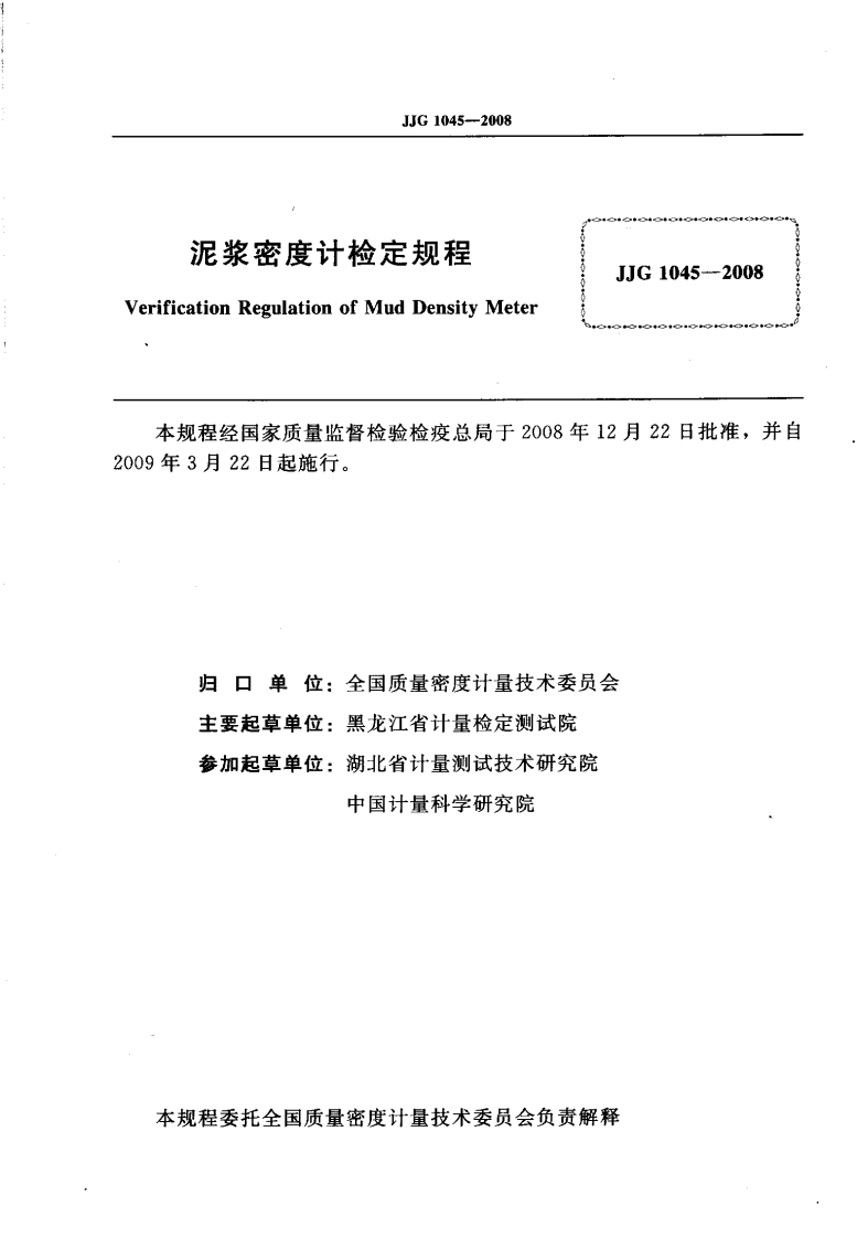 JJG1045-2008泥浆密度计348072@abc4个月前发布关注私信9.72MB15页021JJG1045-2008泥浆密度计此内容为付费资源,请付费后查看¥13¥23黄金会员免费钻石会员免费立即购买您当前未登录!建议登陆后购买,可保存购买订单付费资源 第1页 / 共15页 第2页 / 共15页 试读已结束,还剩13页,您可下载完整版后进行离线阅读 THE END标准规范 文本预览 可国中华人民共和国国家计量检定规程JG1045-2008泥浆密度计Mud Density Meter2008-12一22发布2009-03-22实施国家质量监督检验检疫总局发布 查看更多 收起部分 喜欢就支持一下吧收藏