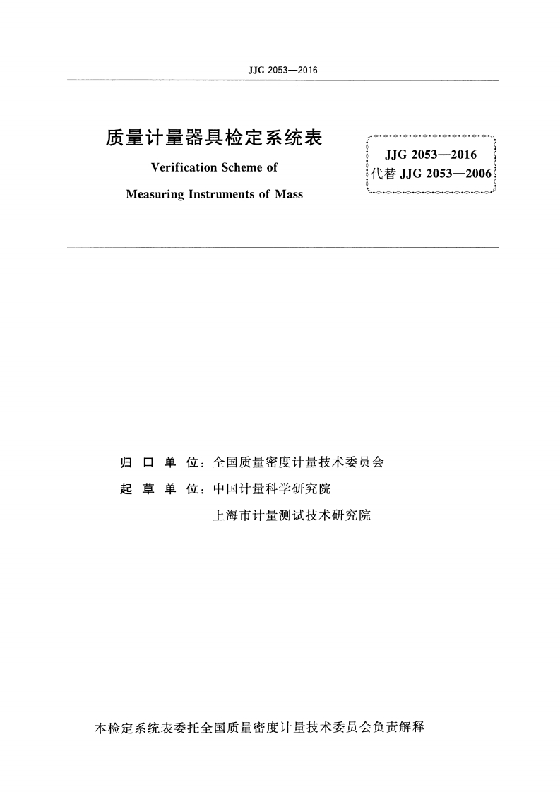 JJG2053-2016质量计量器具检定系统表348072@abc2个月前发布关注私信0.91MB12页03410JJG2053-2016质量计量器具检定系统表此内容为付费资源,请付费后查看¥13¥23黄金会员免费钻石会员免费立即购买您当前未登录!建议登陆后购买,可保存购买订单付费资源 第1页 / 共12页 第2页 / 共12页 试读已结束,还剩10页,您可下载完整版后进行离线阅读 © 版权声明文章版权归作者所有,未经允许请勿转载。THE END标准规范 文本预览 可可G中华人民共和国国家计量检定系统表JJG2053-2016质量计量器具Measuring Instruments of Mass2016-11-25发布2017-05-25实施国家质量监督检验检疫总局发布 查看更多 收起部分 喜欢就支持一下吧点赞10 分享QQ空间微博QQ好友海报分享复制链接收藏