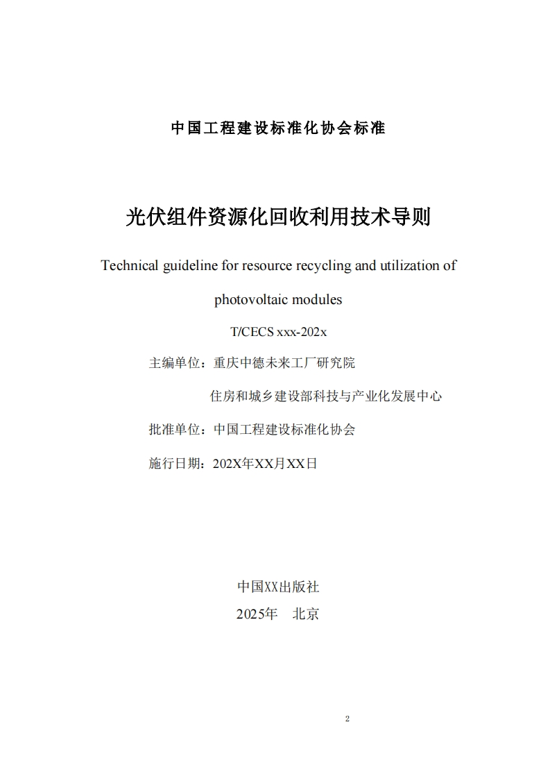 中国工程建设标准化协会标准光伏组件资源化回收利用技术导则Technicalguidelineforresourcerecyclingandutilizationofphotovoltaicmodules(征求意见稿)348072@abc30天前发布关注私信0.30MB17页020中国工程建设标准化协会标准光伏组件资源化回收利用技术导则Technicalguidelineforresourcerecyclingandutilizationofphotovoltaicmodules(征求意见稿)此内容为付费资源,请付费后查看¥19¥26黄金会员免费钻石会员免费立即购买您当前未登录!建议登陆后购买,可保存购买订单付费资源 第1页 / 共17页 第2页 / 共17页 试读已结束,还剩15页,您可下载完整版后进行离线阅读 THE END标准规范 喜欢就支持一下吧收藏