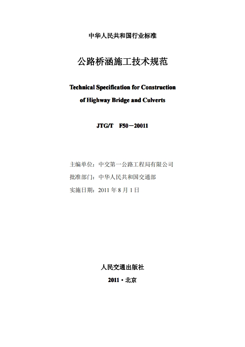 JTG/TF50-2011公路桥涵施工技术规范348072@abc4个月前发布关注私信3.37MB479页035JTG/TF50-2011公路桥涵施工技术规范此内容为付费资源,请付费后查看¥13¥23黄金会员免费钻石会员免费立即购买您当前未登录!建议登陆后购买,可保存购买订单付费资源 第1页 / 共479页 第2页 / 共479页 试读已结束,还剩477页,您可下载完整版后进行离线阅读 THE END标准规范 文本预览 JTG中华人民共和国行业标准JTG/TF50-2011公路桥涵施工技术规范Technical Specification for Constructionof Highway Bridge and Culverts2011-06-09发布2011一08-01实施中华人民共和国交通部发布 查看更多 收起部分 喜欢就支持一下吧收藏