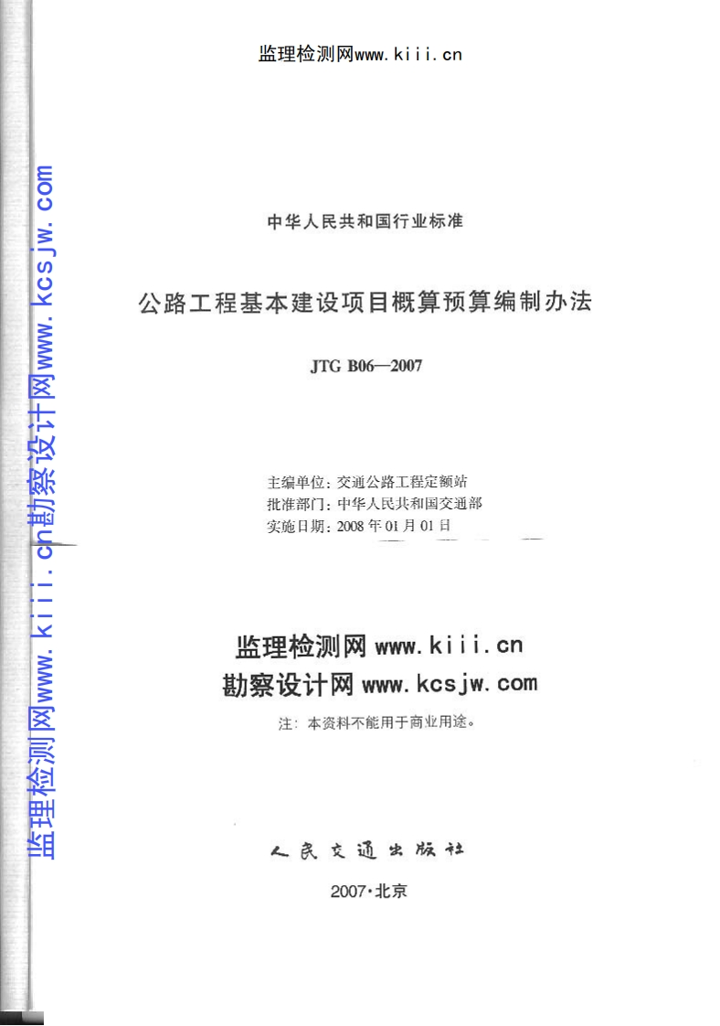JTGB06-2007公路工程基本建设项目概算预算编制办法348072@abc4个月前发布关注私信4.46MB38页040JTGB06-2007公路工程基本建设项目概算预算编制办法此内容为付费资源,请付费后查看¥13¥23黄金会员免费钻石会员免费立即购买您当前未登录!建议登陆后购买,可保存购买订单付费资源 第1页 / 共38页 第2页 / 共38页 试读已结束,还剩36页,您可下载完整版后进行离线阅读 THE END标准规范 文本预览 监理检测网www.kiii.cnJTG中华人民共和国行业标准JTGB06-2007公路工程基本建设项目概算预算编制办法监理检测网www.kiii.cn甚勘察设计网www.kcsjw.com2007-10-19发布2008-01-01实施中华人民共和国交通部发布 查看更多 收起部分 喜欢就支持一下吧收藏