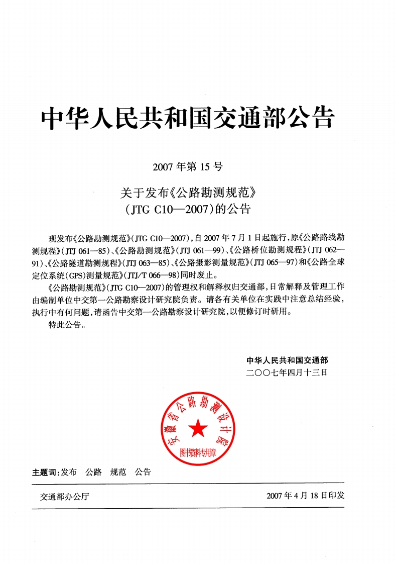 JTGC10-2007公路勘测规范348072@abc4个月前发布关注私信10.30MB99页038JTGC10-2007公路勘测规范此内容为付费资源,请付费后查看¥13¥23黄金会员免费钻石会员免费立即购买您当前未登录!建议登陆后购买,可保存购买订单付费资源 第1页 / 共99页 第2页 / 共99页 试读已结束,还剩97页,您可下载完整版后进行离线阅读 THE END标准规范 文本预览 JTG中华人民共和国行业标准JTGC10-2007公路勘测规范Specifications for Highway Reconnaissance公路卧测形★之图资转拥障2007-04-13发布2007-07-01实施中华人民共和国交通部发布 查看更多 收起部分 喜欢就支持一下吧收藏