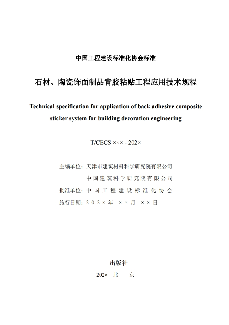 中国工程建设标准化协会标准建筑装饰铺贴背胶应用技术规程拟更名为_石材、陶瓷饰面制品背胶粘贴工程应用技术规程,chnicalspecificationforapplicationofbackadhesivecompositestickersystemforbuildingdecorationengineering(征求意见稿)348072@abc30天前发布关注私信1.49MB87页047中国工程建设标准化协会标准建筑装饰铺贴背胶应用技术规程拟更名为_石材、陶瓷饰面制品背胶粘贴工程应用技术规程,chnicalspecificationforapplicationofbackadhesivecompositestickersystemforbuildingdecorationengineering(征求意见稿)此内容为付费资源,请付费后查看¥19¥26黄金会员免费钻石会员免费立即购买您当前未登录!建议登陆后购买,可保存购买订单付费资源 第1页 / 共87页 第2页 / 共87页 试读已结束,还剩85页,您可下载完整版后进行离线阅读 THE END标准规范 喜欢就支持一下吧收藏