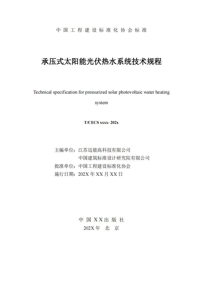 中国工程建设标准化协会标准承压式太阳能光伏热水系统技术规程Technicalspecificationforpressurizedsolarphotovoltaicwaterheatingsystem征求意见稿)(提交反馈意见时,请将有关专利连同支持性文件一并附上)348072@abc30天前发布关注私信1.81MB46页044中国工程建设标准化协会标准承压式太阳能光伏热水系统技术规程Technicalspecificationforpressurizedsolarphotovoltaicwaterheatingsystem征求意见稿)(提交反馈意见时,请将有关专利连同支持性文件一并附上)此内容为付费资源,请付费后查看¥19¥26黄金会员免费钻石会员免费立即购买您当前未登录!建议登陆后购买,可保存购买订单付费资源 第1页 / 共46页 第2页 / 共46页 试读已结束,还剩44页,您可下载完整版后进行离线阅读 THE END标准规范 喜欢就支持一下吧收藏