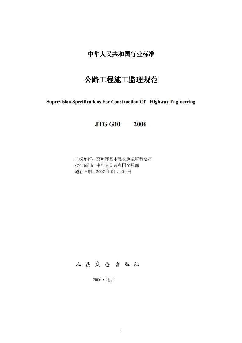 JTGG10-2006公路工程施工监理规范348072@abc4个月前发布关注私信2.38MB41页038JTGG10-2006公路工程施工监理规范此内容为付费资源,请付费后查看¥13¥23黄金会员免费钻石会员免费立即购买您当前未登录!建议登陆后购买,可保存购买订单付费资源 第1页 / 共41页 第2页 / 共41页 试读已结束,还剩39页,您可下载完整版后进行离线阅读 THE END标准规范 文本预览 JTG中华人民共和国行业标准JTGG10-2006公路工程施工监理规范Supervision Specifications For Construction Of Highway Engineering2006-11-02发布2007-01-01实施中华人民共和国交通部发布 查看更多 收起部分 喜欢就支持一下吧收藏