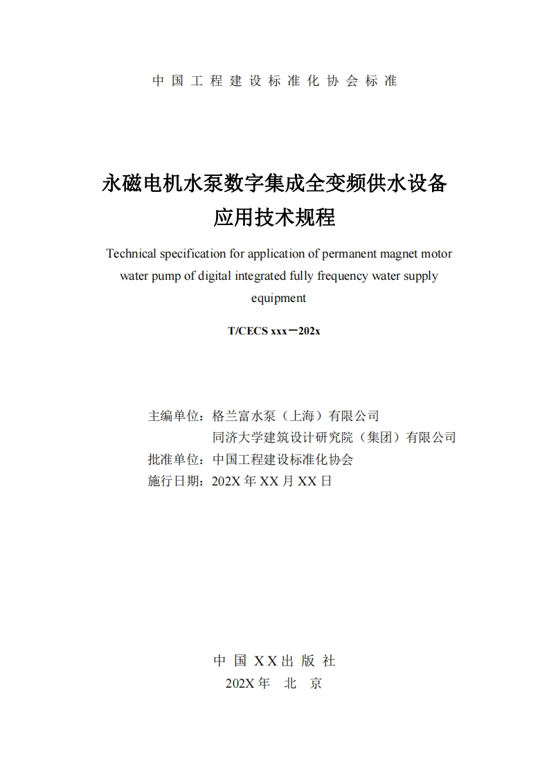 中国工程建设标准化协会标准永磁电机水泵数字集成全变频供水设备应用技术规程Technicalspecificationforapplicationofpermanentmagnetmotorwaterpumpofdigitalintegratedfullyfrequencywatersupplyequipment征求意见稿)(提交反馈意见时,请将有关专利连同支持性文件一并附上)348072@abc29天前发布关注私信0.87MB91页028中国工程建设标准化协会标准永磁电机水泵数字集成全变频供水设备应用技术规程Technicalspecificationforapplicationofpermanentmagnetmotorwaterpumpofdigitalintegratedfullyfrequencywatersupplyequipment征求意见稿)(提交反馈意见时,请将有关专利连同支持性文件一并附上)此内容为付费资源,请付费后查看¥19¥26黄金会员免费钻石会员免费立即购买您当前未登录!建议登陆后购买,可保存购买订单付费资源 第1页 / 共91页 第2页 / 共91页 试读已结束,还剩89页,您可下载完整版后进行离线阅读 THE END标准规范 喜欢就支持一下吧收藏