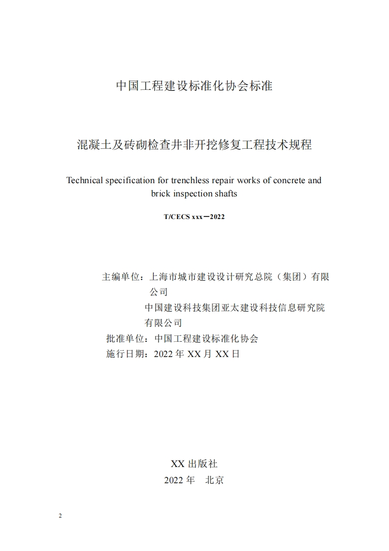 中国工程建设标准化协会标准混凝土及砖砌检查井非开挖修复工程技术规程Technicalspecificationfortrenchlessrepairworksofconcreteandbrickinspectionshafts征求意见稿)348072@abc30天前发布关注私信1.19MB59页024中国工程建设标准化协会标准混凝土及砖砌检查井非开挖修复工程技术规程Technicalspecificationfortrenchlessrepairworksofconcreteandbrickinspectionshafts征求意见稿)此内容为付费资源,请付费后查看¥19¥26黄金会员免费钻石会员免费立即购买您当前未登录!建议登陆后购买,可保存购买订单付费资源 第1页 / 共59页 第2页 / 共59页 试读已结束,还剩57页,您可下载完整版后进行离线阅读 THE END标准规范 喜欢就支持一下吧收藏