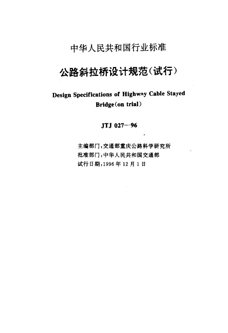 JTJ027-96公路斜拉桥设计规范348072@abc4个月前发布关注私信1.34MB61页027JTJ027-96公路斜拉桥设计规范此内容为付费资源,请付费后查看¥17¥32黄金会员免费钻石会员免费立即购买您当前未登录!建议登陆后购买,可保存购买订单付费资源 第1页 / 共61页 第2页 / 共61页 试读已结束,还剩59页,您可下载完整版后进行离线阅读 THE END标准规范 文本预览 JTJ中华人民共和国行业标准JTJ027-96公路斜拉桥设计规范(试行)Design Specifications of Highway CableStayed Bridge (on trial)1996一05一20发布1996一12一01试行中华人民共和国交通部发布 查看更多 收起部分 喜欢就支持一下吧收藏