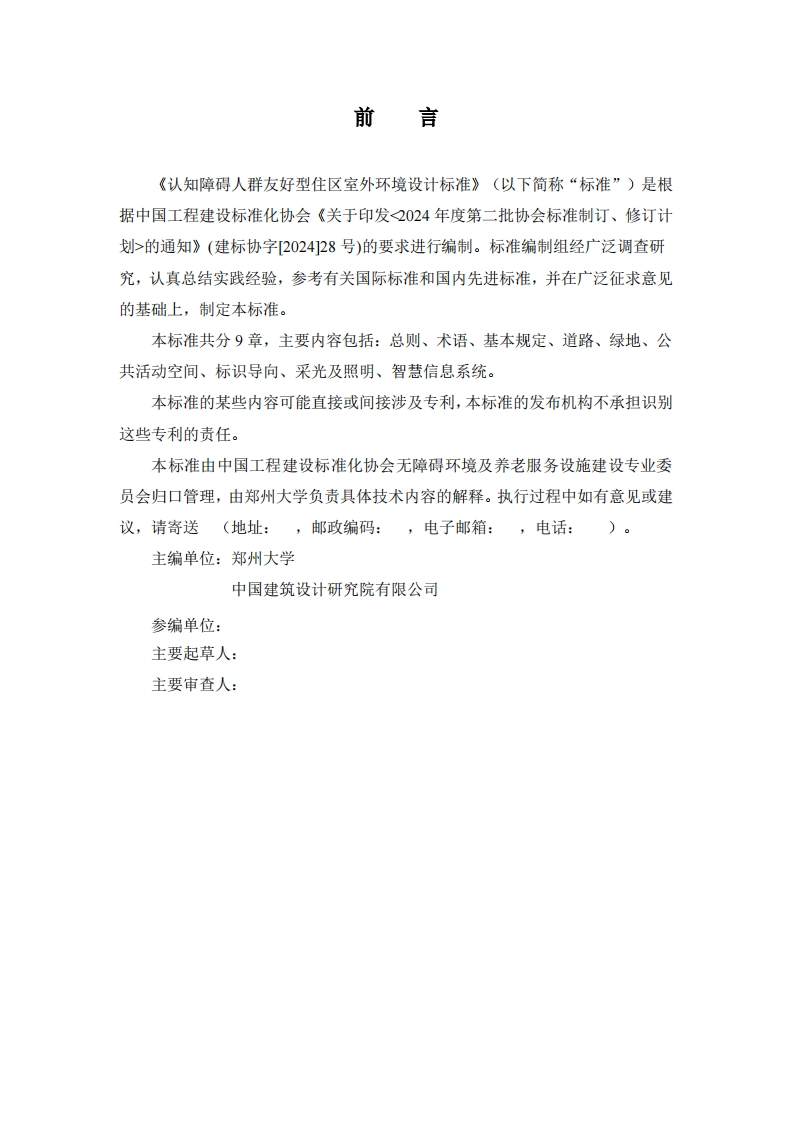 中国工程建设标准化协会标准认知障碍人群友好型住区室外环境设计标准DesignStandardsforOutdoorEnvironmentsinResidentialAreasFriendlytoPeoplewithCognitiveImpairments征求意见稿)(提交反馈意见时,请将有关专利连同支持性文件一并附上)348072@abc29天前发布关注私信0.49MB43页031中国工程建设标准化协会标准认知障碍人群友好型住区室外环境设计标准DesignStandardsforOutdoorEnvironmentsinResidentialAreasFriendlytoPeoplewithCognitiveImpairments征求意见稿)(提交反馈意见时,请将有关专利连同支持性文件一并附上)此内容为付费资源,请付费后查看¥19¥26黄金会员免费钻石会员免费立即购买您当前未登录!建议登陆后购买,可保存购买订单付费资源 第1页 / 共43页 第2页 / 共43页 试读已结束,还剩41页,您可下载完整版后进行离线阅读 THE END标准规范 喜欢就支持一下吧收藏