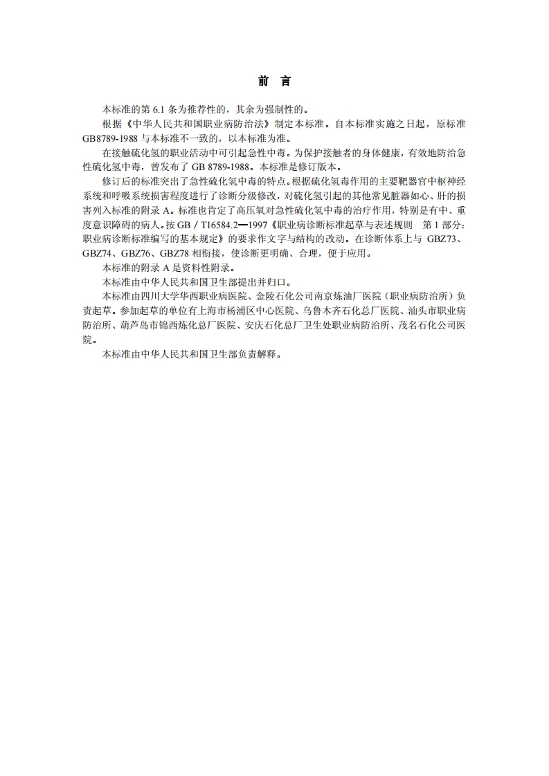 中华人民共和国国家职业卫生标准GBZ31-2002职业性急性硫化氢中毒临床诊断标准规范DiagnosticCriteriaofOccupationalAcuteHydrogenSulfidePoisoning348072@abc9天前发布关注私信0.14MB5页020中华人民共和国国家职业卫生标准GBZ31-2002职业性急性硫化氢中毒临床诊断标准规范DiagnosticCriteriaofOccupationalAcuteHydrogenSulfidePoisoning此内容为付费资源,请付费后查看¥19¥26黄金会员免费钻石会员免费立即购买您当前未登录!建议登陆后购买,可保存购买订单付费资源 第1页 / 共5页 第2页 / 共5页 试读已结束,还剩3页,您可下载完整版后进行离线阅读 THE END标准规范 喜欢就支持一下吧收藏