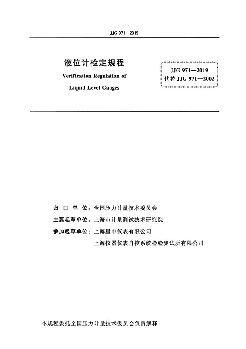 中华人民共和国国家计量检定规程JJG971-2019液位计LiquidLevelGauges348072@abc17天前发布关注私信14.23MB17页021中华人民共和国国家计量检定规程JJG971-2019液位计LiquidLevelGauges此内容为付费资源,请付费后查看¥19¥26黄金会员免费钻石会员免费立即购买您当前未登录!建议登陆后购买,可保存购买订单付费资源 第1页 / 共17页 第2页 / 共17页 试读已结束,还剩15页,您可下载完整版后进行离线阅读 THE END标准规范 喜欢就支持一下吧收藏