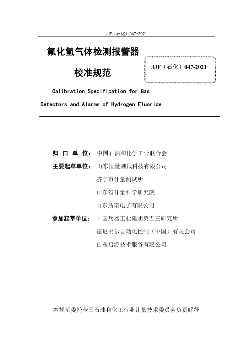 中华人民共和国工业和信息化部石油和化工计量技术规范JJF(石化)047-2021氟化氢气体检测报警器校准规范CalibrationSpecificationforGasDetectorsandAlarmsofHydrogenFluoride348072@abc19天前发布关注私信8.91MB19页023中华人民共和国工业和信息化部石油和化工计量技术规范JJF(石化)047-2021氟化氢气体检测报警器校准规范CalibrationSpecificationforGasDetectorsandAlarmsofHydrogenFluoride此内容为付费资源,请付费后查看¥19¥26黄金会员免费钻石会员免费立即购买您当前未登录!建议登陆后购买,可保存购买订单付费资源 第1页 / 共19页 第2页 / 共19页 试读已结束,还剩17页,您可下载完整版后进行离线阅读 THE END标准规范 喜欢就支持一下吧收藏