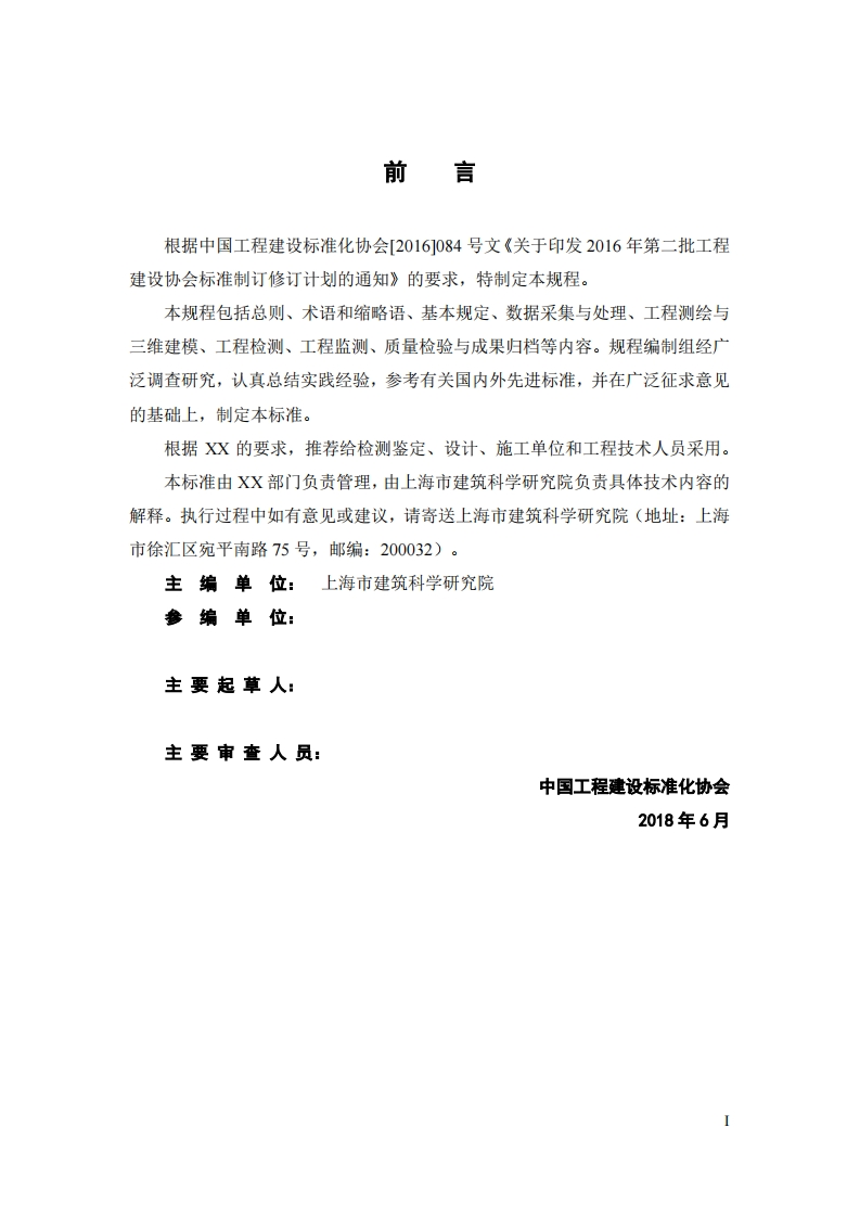 中国工程建设协会标准地面三维激光扫描工程应用技术规程Technicalspecificationforapplicationofterrestrialthree-dimensionalaserscanning(征求意见稿)348072@abc30天前发布关注私信0.83MB44页032中国工程建设协会标准地面三维激光扫描工程应用技术规程Technicalspecificationforapplicationofterrestrialthree-dimensionalaserscanning(征求意见稿)此内容为付费资源,请付费后查看¥19¥26黄金会员免费钻石会员免费立即购买您当前未登录!建议登陆后购买,可保存购买订单付费资源 第1页 / 共44页 第2页 / 共44页 试读已结束,还剩42页,您可下载完整版后进行离线阅读 THE END标准规范 喜欢就支持一下吧收藏