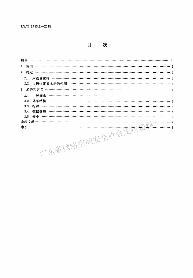 LY-T-2413-2–2015348072@abc4个月前发布关注私信0.45MB15页023LY-T-2413-2–2015此内容为付费资源,请付费后查看¥17¥32黄金会员免费钻石会员免费立即购买您当前未登录!建议登陆后购买,可保存购买订单付费资源 第1页 / 共15页 第2页 / 共15页 试读已结束,还剩13页,您可下载完整版后进行离线阅读 THE END标准规范 文本预览 ICS65.020.01B65LY中华人民共和国林业行业标准LY/T2413.2-2015林业物联网第2部分:术语Forestry internet of things-Part 2Termin广东省网络空间安全协会受2015-10-19发布2016-01-01实施国家林业局发布 查看更多 收起部分 喜欢就支持一下吧收藏