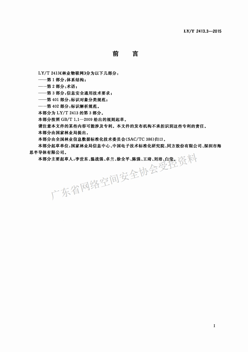 LY-T-2413-3–2015348072@abc4个月前发布关注私信0.34MB10页032LY-T-2413-3–2015此内容为付费资源,请付费后查看¥17¥32黄金会员免费钻石会员免费立即购买您当前未登录!建议登陆后购买,可保存购买订单付费资源 第1页 / 共10页 第2页 / 共10页 试读已结束,还剩8页,您可下载完整版后进行离线阅读 THE END标准规范 文本预览 ICs65.020.01B65LY中华人民共和国林业行业标准LY/T2413.3-2015林业物联网第3部分:信息安全通用技术要求受控资料Forestry internet of thingsPar 3General technical requirement of广东省网络oim2015-01-27发布2015-05-01实施国家林业局发布 查看更多 收起部分 喜欢就支持一下吧收藏