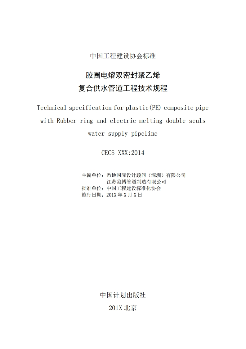 中国工程建设协会标准胶圈电熔双密封聚乙烯复合供水管道工程技术规程echnicalspecificationforplastic(PE)compositepipewithRubberringandelectricmeltingdoublesealswatersupplypipeline征求意见稿)348072@abc30天前发布关注私信1.67MB87页046中国工程建设协会标准胶圈电熔双密封聚乙烯复合供水管道工程技术规程echnicalspecificationforplastic(PE)compositepipewithRubberringandelectricmeltingdoublesealswatersupplypipeline征求意见稿)此内容为付费资源,请付费后查看¥19¥26黄金会员免费钻石会员免费立即购买您当前未登录!建议登陆后购买,可保存购买订单付费资源 第1页 / 共87页 第2页 / 共87页 试读已结束,还剩85页,您可下载完整版后进行离线阅读 THE END标准规范 喜欢就支持一下吧收藏