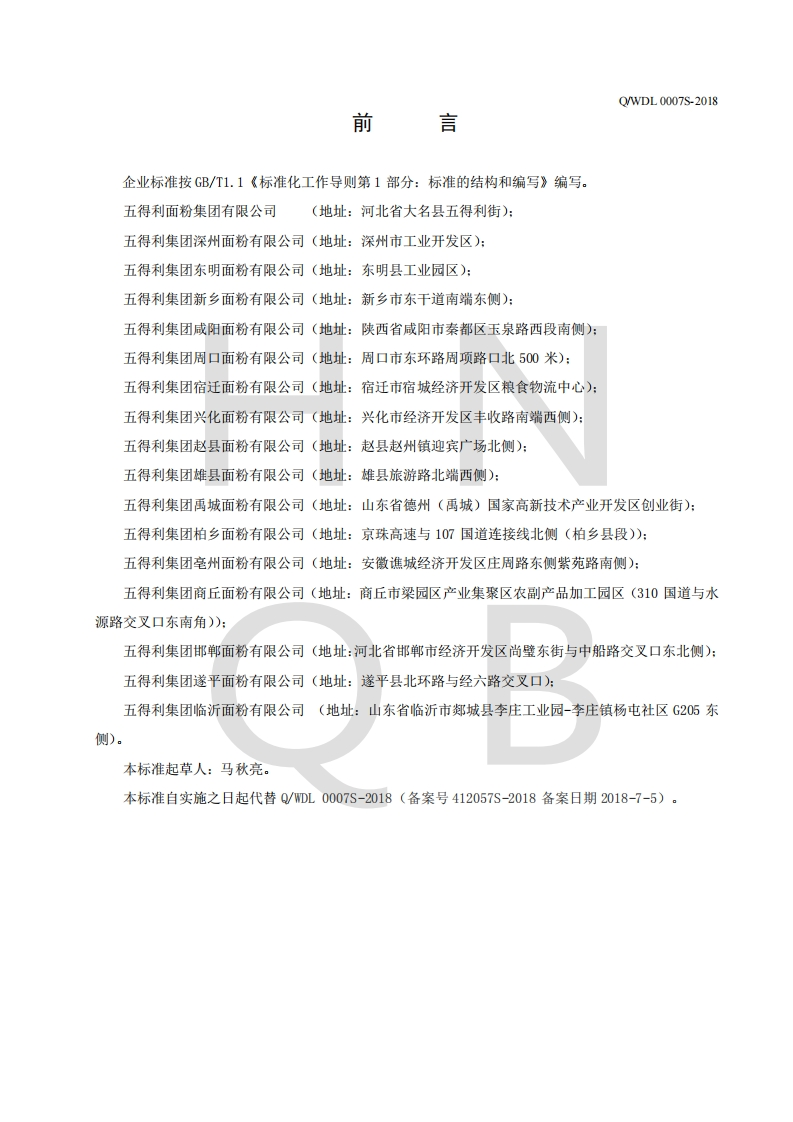 五得利集团新乡面粉有限公司企业强制性标准规范Q_WDL0007S-2018全麦小麦粉2018-08-20发布2018-08-20实施五得利集团新乡面粉有限公司发布348072@abc28天前发布关注私信0.17MB5页033五得利集团新乡面粉有限公司企业强制性标准规范Q_WDL0007S-2018全麦小麦粉2018-08-20发布2018-08-20实施五得利集团新乡面粉有限公司发布此内容为付费资源,请付费后查看¥19¥23黄金会员免费钻石会员免费立即购买您当前未登录!建议登陆后购买,可保存购买订单付费资源 第1页 / 共5页 第2页 / 共5页 试读已结束,还剩3页,您可下载完整版后进行离线阅读 THE END标准规范 喜欢就支持一下吧收藏