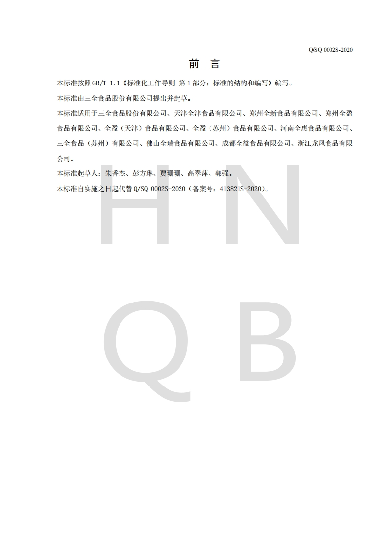三全食品股份有限公司企业强制性标准规范冷藏方便食品Q_SQ0002S-2020_1348072@abc29天前发布关注私信0.37MB14页050三全食品股份有限公司企业强制性标准规范冷藏方便食品Q_SQ0002S-2020_1此内容为付费资源,请付费后查看¥19¥23黄金会员免费钻石会员免费立即购买您当前未登录!建议登陆后购买,可保存购买订单付费资源 第1页 / 共14页 第2页 / 共14页 试读已结束,还剩12页,您可下载完整版后进行离线阅读 THE END标准规范 喜欢就支持一下吧收藏