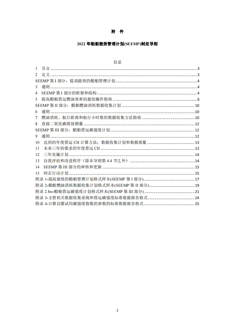 环保会MEPC.346(78)决议(2022年6月10日通过)2022年船舶能效管理计划(SEEMP)制定导则海上环境保护委员会,忆及《国际海事组织公约》关于防止和控制船舶造成海洋污染国际公约赋予海上环境保护委员会(本委员会)职能的第38(a)条,注意到本委员会在其第76届会议上以MEP℃.328(76)决议通过的《2021年经修订的MARPOL附则VI》将于2022年11月1日生效,特别注意到《2021年经修订的MARPOL附则VI》(MARPOL附则VI)包括关于减少国际航运碳强度的强制性基于目标的技术和营运措施的修正案,进一步注意到MARPOL附则VⅥ第26条要求,每艘船舶应在船上保存一份针对船舶特定的船舶能效管理计划(SEEMP)。SEEMP应结合本组织通过的导则制定和评审,认识到上述MARPOL附则VⅥ修正案要求相关导则以统一有效地实施规则,并有足够的前置时间供业界做好准备,注意到本委员会在其第70届会议上以MEPC282(70)决议通过的《2016年船舶能效管理计划(SEEMP)制定导则》,在其第78届会议上,审议了《2022年船舶能效管理计划(SEEMP)制定导则》草案,1通过《2022年船舶能效管理计划(SEEMP)制定导则》,其文本载于本决议附件:2提请各国主管机关在制定实施和执行MARPOL附则VⅥI第26条要求的本国法律时考虑附件中的导则:3要求MARPOL附则VI的各缔约国和其他成员国政府使船长、海员、船东、船舶经营者和任何其他相关方注意到附件中的导则:4同意根据在实施中所获得的经验对导则保持审议,还考虑到根据MARPOL附则VI第25.3和28.11条,应在2026年1月1日以前完成对减少国际航运碳强度的技术和营运措施的评审:5废除MEPC.282(70)决议通过的《2016年船舶能效管理计划(SEEMP)制定导则》。