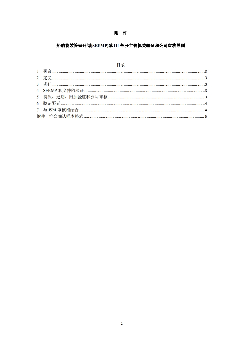 环保会MEPC.347(78)决议(2022年6月10日通过)船舶能效管理计划(SEEMP)第Ⅱ部分主管机关验证和公司审核导则海上环境保护委员会,忆及《国际海事组织公约》关于防止和控制船舶造成海洋污染国际公约赋予海上环境保护委员会(本委员会)职能的第38(a)条,注意到本委员会在其第76届会议上以MEPC.328(76)决议通过的《2021年经修订的MARPOL附则VI》将于2022年11月1日生效,特别注意到《2021年经修订的MARPOL附则VI》(MARPOL附则VI)包括关于减少国际航运碳强度的强制性基于目标的技术和营运措施的修正案,进一步注意到MARPOL附则VⅥ第26条要求,每艘船舶应在船上保存一份针对船舶特定的船舶能效管理计划(SEEMP)。SEEMP应结合本组织通过的导则制定和评审,认识到上述MARPOL附则VI修正案要求相关导则以统一有效地实施规则,并有足够的前置时间供业界做好准备,在其第78届会议上,审议了《船舶能效管理计划(SEEMP)第Ⅲ部分主管机关验证和公司审核导则》草案,1通过《船舶能效管理计划(SEEMP)第I部分主管机关验证和公司审核导则》,其文本载于本决议附件:2提请各国主管机关在制定实施和执行MARPOL附则VI第26条要求的本国法律时考虑附件中的导则:3要求MARPOL附则VⅥ的各缔约国和其他成员国政府使船长、海员、船东、船舶经营者和任何其他相关方注意到附件中的导则:和4同意根据在实施中所获得的经验对导则保持审议,还考虑到根据MARPOL附则VⅥ第25.3和28.11条,应在2026年1月1日以前完成对减少国际航运碳强度的技术和营运措施的评审。