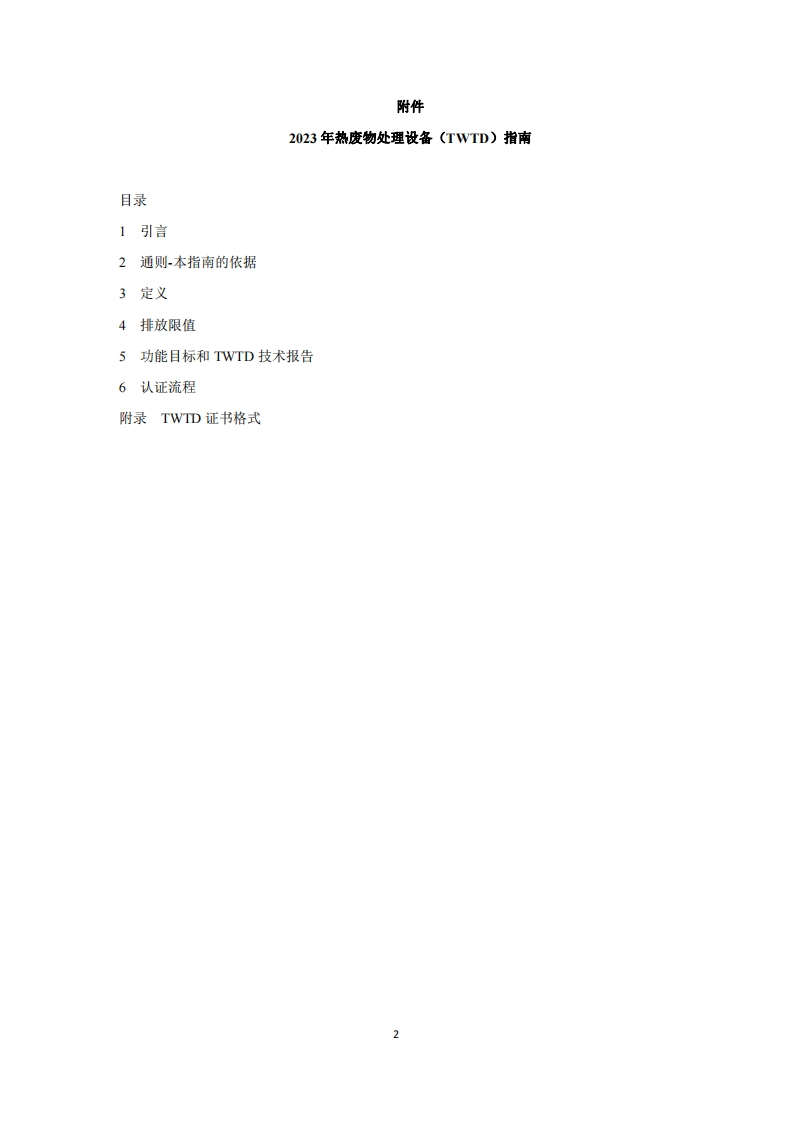 环保会MEPC.373(80)决议(2023年7月7日通过)2023年热废物处理设备(TWTD)指南海上环境保护委员会,忆及《国际海事组织公约》关于防止和控制船舶造成海洋污染国际公约赋子海上环境保护委员会(本委员会)职能的第38(a)条,还忆及本委员会在其第58届会议上,以M正P℃.176(58)决议通过了经修订的MARPOL附则VⅥ,在第16条的5.2提到本条不应排除对符合或超过本条要求的船上热废物处理设备替代设计而进行的开发、安装和使用,注意到MARPOL附则VI第4条允许使用与本附则对减排方面所要求者至少同等有效的替代合规方法,认识到有必要制定使用热废物处理设备指南,作为符合第16条中所载的船上焚烧标准的替代方法,在其第80届会议上审议了污染预防和响应分委会在其第10次会议上制定的《2023年热废物处理设备(TWTD)指南》(以下简称“2023年TWTD指南”),1通过2023年TWTD指南,其文本载于本决议附件:2提请各主管机关在按MARPOL附则V1第4条制定作为等效符合措施的管理热废物处理设备的规定时,考虑所附指南:3要求MARPOL附则VI缔约方和其它成员国政府使船东、船舶经营者、船厂、船用设备制造商和任何相关团体注意到2023年TWTD指南:4同意根据其应用所获取的经验对本指南保持审议。