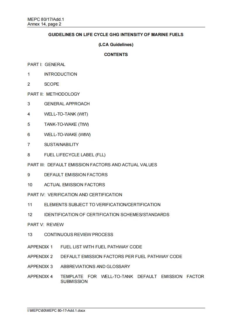 MEPC 80/17/Add.1Annex 14,page 1ANNEX 14RESOLUTION MEPC.376(80)(adopted on 7 July 2023)GUIDELINES ON LIFE CYCLE GHG INTENSITY OF MARINE FUELS(LCA GUIDELINES)THE MARINE ENVIRONMENT PROTECTION COMMITTEE,RECALLING Article 38(a)of the Convention on the International Maritime Organization(the Committee)concerning the functions of the Marine Environment Protection Committeeconferred upon it by international conventions for the prevention and control of marine pollutionfrom ships,RECALLING ALSO that at its seventy-second session,the Committee adopted resolutionMEPC.304(72)on Initial IMO Strategy on Reduction of GHG Emissions from Ships (InitialStrategy).NOTING that the Initial Strategy calls for the development of robust life cycle GHG/carbonintensity guidelines for all types of fuels,in order to prepare for an implementation programmefor effective uptake of alternative low-carbon and zero-carbon fuels,NOTING ALSO that at its eightieth session,the Committee adopted resolution MEPC.377(80)on the 2023 IMO Strategy on Reduction of GHG Emissions from Ships (2023 IMO Strategy)setting out the levels of ambition for the international shipping sector in reducing GHGemissions.NOTING FURTHER that the 2023 IMO Strategy provides that the levels of ambition andindicative checkpoints should take into account the well-to-wake GHG emissions of marinefuels as addressed in the guidelines on life cycle GHG intensity of marine fuels developed bythe Organization,NOTING that the 2023 IMO Strategy provides that the basket of candidate mid-term GHGreduction measures should take into account the well-to-wake GHG emissions of marine fuelsas addressed in the guidelines on life cycle GHG intensity of marine fuels developed by theOrganization,HAVING CONSIDERED,at its eightieth session,the draft guidelines on life cycle GHGintensity of marine fuels (LCA Guidelines),ADOPTS the Guidelines on life cycle GHG intensity of marine fuels(LCA Guidelines),as set out in the annex to the present resolution;2AGREES that any regulatory application and implications of the LCA Guidelinesshould be determined by the Committee in the process of developing regulatory provisions,3REQUESTS Member Governments to bring the annexed Guidelines to the attentionof shipowners,ship operators,shipbuilders,ship designers,energy companies,fuel producers,bunkering companies,engine manufacturers and any other interested parties;AGREES to keep these Guidelines under review in light of experience gained withtheir implementation.I:MEPC80MEPC 80-17-Add.1.docx