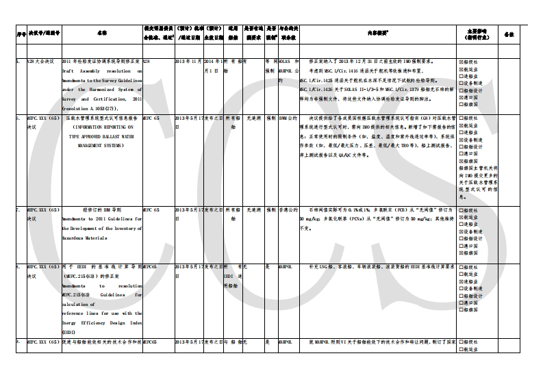 IMO MEPO丝尼通进款体文并清单(文件导以后期M0正式极告公布为准)决议青国香青者来见安要时)州)建是有是亚鲁肉视要情★批来、道以国过日痛佳兼日州加琳病要求物果条谦内家物买(和州物业)春业图大会决纹压使木公的实施2803山月发有之所有树健纹每个成员国核服一个下选的时同表条制实施压较木会的:区粉悦杜1对公约生效前建淡的船施〔着卧13和止15条),在会的生效日区航策量口速督量物后的首次快证整稳之前,不要求辣合一2解准:口设备制造.2对千卧1L1,-小12和-3.4所省船脑在D-2标唯适用千被口督能设计船的当年的交船周华目后的首次快证整验前不要求粹合D一2解准:区港和国.3但对千山1L1所速的相施,如果公约在014年后生效,则在会区船牌国的生效目期后的首次快证脸散之前,不晏求粹合一2拆准:.4但对千山1L2和卧14所速的船糖,如果会物在206车后生效测在公的生效日南后的首次慎证整脸之前,不曼求种合心2桥准,“,5上速条款中的“快证整龄”与题L附脚【中的师证书的供证脸稳相协酒。图大会决仪国家吃位美用于国际公的大会决纹3华山月发右之目所有平形等网吃位会西酬确国家吃使更用于国年公的。区粉悦杜保制区机筑业口选船量atimnal tonnue in eplying口设备制淡口督触设计区港和国区船碳国图大会决假0条制性文作下的非洋水的03军2803华山月度有之目所有乖列出了业0条制性文件下的非年尽的义务清单。区每极社汉务清单保制DLAS会区机筑业口速粉量raft Aoehly reolut ion on0l☒口设备制造口智触设计nder inatrumenta relevant to the口港P国区船碳国MO Ina truon ta Iepl cmmn tation Code(III Code)☒大会费假率发责规侧修订28013华山月皮布之国所有树形对库率发责观周C巧8作了T,口督极社raft Aa:起bly reaolution区航筑量口速船量口设多制造in the implementat ion of口船施设计ual ty Inveati sit ionCade区港甲国区督隆国olut ion5C写5(81)