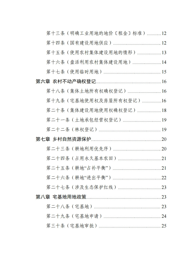 乡村振兴用地政策指南(2023年)目录第一章总则…第一条(总体要求)第二条(适用范围)第三条(基本原则)第二章规划管理第四条(规划符合性)第五条(规划布局)第三章新增建设用地计划保障…第六条(土地利用年度计划)第七条(倾斜支持乡村振兴措施)…4第四章建设用地审批与规划许可.6第八条(用地预审与选址意见书)6第九条(建设用地审批)…7第十条(规划许可)8第十一条(可按原地类管理的情形)…10第五章土地利用与供应11第十二条(严格执行土地使用标准)11