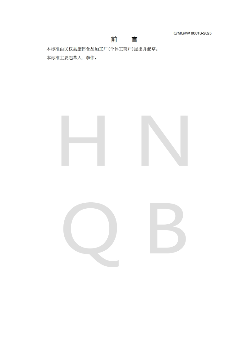 民权县康伟食品加工厂(个体工商户)企业强制性标准规范Q_MQKW0001S-2025肉皮冻2025-03-06发布2025-03-06实施民权县康伟食品加工厂(个体工商户)发布348072@abc28天前发布关注私信0.19MB6页049民权县康伟食品加工厂(个体工商户)企业强制性标准规范Q_MQKW0001S-2025肉皮冻2025-03-06发布2025-03-06实施民权县康伟食品加工厂(个体工商户)发布此内容为付费资源,请付费后查看¥19¥23黄金会员免费钻石会员免费立即购买您当前未登录!建议登陆后购买,可保存购买订单付费资源 第1页 / 共6页 第2页 / 共6页 试读已结束,还剩4页,您可下载完整版后进行离线阅读 THE END标准规范 喜欢就支持一下吧收藏