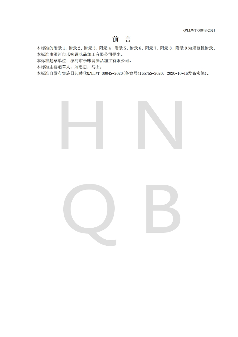 漯河市乐味调味品加工有限公司企业强制性标准规范Q_LLWT0004S-2021半固态复合调味料_1348072@abc11天前发布关注私信3.37MB58页036漯河市乐味调味品加工有限公司企业强制性标准规范Q_LLWT0004S-2021半固态复合调味料_1此内容为付费资源,请付费后查看¥19¥23黄金会员免费钻石会员免费立即购买您当前未登录!建议登陆后购买,可保存购买订单付费资源 第1页 / 共58页 第2页 / 共58页 试读已结束,还剩56页,您可下载完整版后进行离线阅读 THE END标准规范 喜欢就支持一下吧收藏