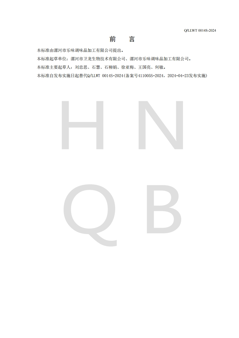 漯河市乐味调味品加工有限公司企业强制性标准规范Q_LLWT0014S-2024魔芋制品预拌粉2024-09-17发布2024-09-17实施漯河市乐味调味品加工有限公司发布348072@abc6天前发布关注私信0.25MB6页048漯河市乐味调味品加工有限公司企业强制性标准规范Q_LLWT0014S-2024魔芋制品预拌粉2024-09-17发布2024-09-17实施漯河市乐味调味品加工有限公司发布此内容为付费资源,请付费后查看¥19¥23黄金会员免费钻石会员免费立即购买您当前未登录!建议登陆后购买,可保存购买订单付费资源 第1页 / 共6页 第2页 / 共6页 试读已结束,还剩4页,您可下载完整版后进行离线阅读 THE END标准规范 喜欢就支持一下吧收藏