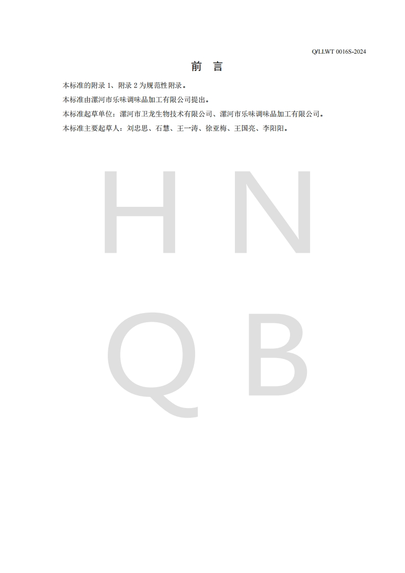 漯河市乐味调味品加工有限公司企业强制性标准规范Q_LLWT0016S-2024膨化食品专用调味油348072@abc6天前发布关注私信0.98MB18页043漯河市乐味调味品加工有限公司企业强制性标准规范Q_LLWT0016S-2024膨化食品专用调味油此内容为付费资源,请付费后查看¥19¥23黄金会员免费钻石会员免费立即购买您当前未登录!建议登陆后购买,可保存购买订单付费资源 第1页 / 共18页 第2页 / 共18页 试读已结束,还剩16页,您可下载完整版后进行离线阅读 THE END标准规范 喜欢就支持一下吧收藏