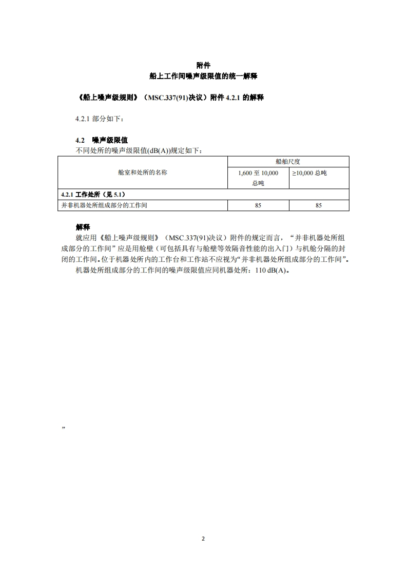 MSC.1-Circ.1654-船上工作间噪声级限值的统一解释348072@abc4个月前发布关注私信94.91KB2页049MSC.1-Circ.1654-船上工作间噪声级限值的统一解释此内容为付费资源,请付费后查看¥13¥23黄金会员免费钻石会员免费立即购买您当前未登录!建议登陆后购买,可保存购买订单付费资源 第1页 / 共2页 第2页 / 共2页 已完成全部阅读,共2页 THE END标准规范 文本预览 海安会MSC.1/Circ.1654通函(2022年5月9日)船上工作间噪声级限值的统一解释1海上安全委员会在其第105届会议(2022年4月20日至29日)上,为了对《船上噪声级规则》(MSC.337(91)决议)关于“并非机器处所组成部分的工作间”的噪声限值提供统一应用,批准了船舶设计和构造分委会在其第8次会议(2022年1月17日至21日)上制定的《船上工作间噪声级限值的统一解释》,其文本载于附件。2提请各成员国政府应用所附的统一解释,并使所有相关方注意该统一解释。 查看更多 收起部分 喜欢就支持一下吧收藏