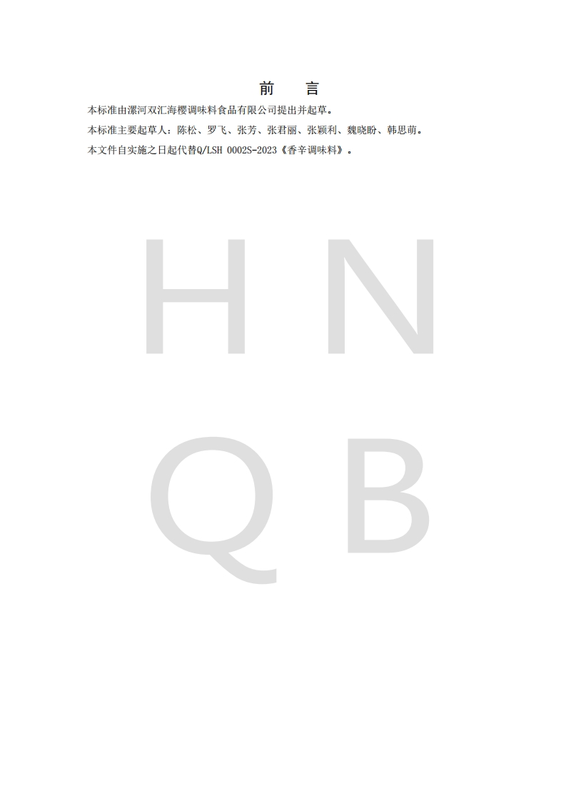 香辛调味料Q_LSH0002S-20252025-08-18发布2025-08-18实施漯河双汇海樱调味料食品有限公司发布348072@abc16天前发布关注私信0.23MB7页028香辛调味料Q_LSH0002S-20252025-08-18发布2025-08-18实施漯河双汇海樱调味料食品有限公司发布此内容为付费资源,请付费后查看¥19¥23黄金会员免费钻石会员免费立即购买您当前未登录!建议登陆后购买,可保存购买订单付费资源 第1页 / 共7页 第2页 / 共7页 试读已结束,还剩5页,您可下载完整版后进行离线阅读 THE END标准规范 喜欢就支持一下吧收藏