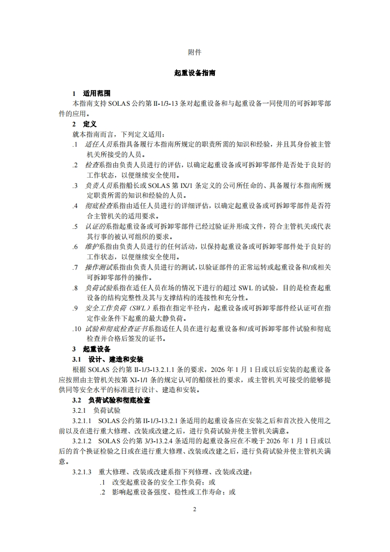 海安会MSC.1/Circ.1663通函(2023年6月28日)起重设备指南1海上安全委员会在其第107届会议(2023年5月31日至6月9日)上,审议了船舶系统和设备分委会(SSE)在其第8次会议上提出的提案,为确保对以MSC.532(107)决议通过的SOLAS公约第Ⅲ-1/3-13条的统一应用,批准了《起重设备指南》,其文本载于附件.2提请成员国在应用SOLAS公约第Ⅱ-1/3-13条时,使用所附的指南并使船舶设计方、船厂、船东、设备制造商和其他组织和相关方注意到本指南。