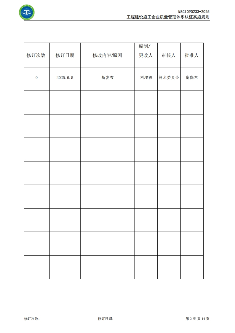 MSCI090233-2025工程建设施工质量管理体系认证实施细则348072@abc4个月前发布关注私信0.33MB14页043MSCI090233-2025工程建设施工质量管理体系认证实施细则此内容为付费资源,请付费后查看¥13¥23黄金会员免费钻石会员免费立即购买您当前未登录!建议登陆后购买,可保存购买订单付费资源 第1页 / 共14页 第2页 / 共14页 试读已结束,还剩12页,您可下载完整版后进行离线阅读 THE END标准规范 文本预览 广东质检中诚认证有限公司体系认证管理文件Ms01090233-2025工程建设施工企业质量管理体系认证实施规则2025年06月05日发布2025年06月05日实施声明:本文件系广东质检中诚认证有限公司(CTC)内部文件,涉及CTC核心秘密,著作权为CTC专有。未经CTC书面授权,不得复制、摘编、发布、发表、转载、链接或以其他形式使用本文件,违者将追究相关责任。 查看更多 收起部分 喜欢就支持一下吧收藏