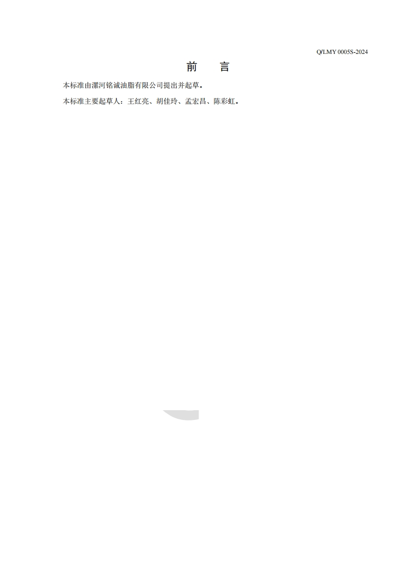 漯河铭诚油脂有限公司企业强制性标准规范Q_LMY0005S-2024人造黄油(人造奶油)348072@abc29天前发布关注私信0.22MB6页039漯河铭诚油脂有限公司企业强制性标准规范Q_LMY0005S-2024人造黄油(人造奶油)此内容为付费资源,请付费后查看¥19¥23黄金会员免费钻石会员免费立即购买您当前未登录!建议登陆后购买,可保存购买订单付费资源 第1页 / 共6页 第2页 / 共6页 试读已结束,还剩4页,您可下载完整版后进行离线阅读 THE END标准规范 喜欢就支持一下吧收藏
