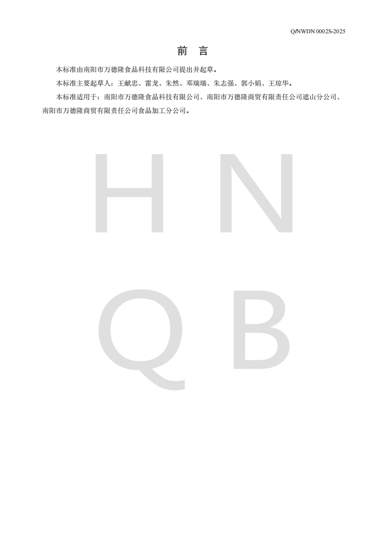 南阳市万德隆食品科技有限公司企业强制性标准规范Q_NWDN0002S-2025生湿面制品2025-06-20发布2025-06-20实施348072@abc29天前发布关注私信0.19MB6页035南阳市万德隆食品科技有限公司企业强制性标准规范Q_NWDN0002S-2025生湿面制品2025-06-20发布2025-06-20实施此内容为付费资源,请付费后查看¥19¥23黄金会员免费钻石会员免费立即购买您当前未登录!建议登陆后购买,可保存购买订单付费资源 第1页 / 共6页 第2页 / 共6页 试读已结束,还剩4页,您可下载完整版后进行离线阅读 THE END标准规范 喜欢就支持一下吧收藏