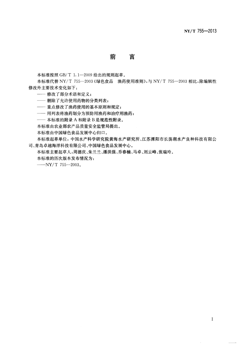 NY-T-755-2013348072@abc4个月前发布关注私信0.61MB13页025NY-T-755-2013此内容为付费资源,请付费后查看¥13¥23黄金会员免费钻石会员免费立即购买您当前未登录!建议登陆后购买,可保存购买订单付费资源 第1页 / 共13页 第2页 / 共13页 试读已结束,还剩11页,您可下载完整版后进行离线阅读 THE END标准规范 文本预览 ICS65.150B50NY中华人民共和国农业行业标准NY/T755-2013代替NY/T755-2003绿色食品渔药使用准则Green food-Fishery drug application guideline2013-12-13发布2014-04-01实施中华人民共和国农业部发布 查看更多 收起部分 喜欢就支持一下吧收藏