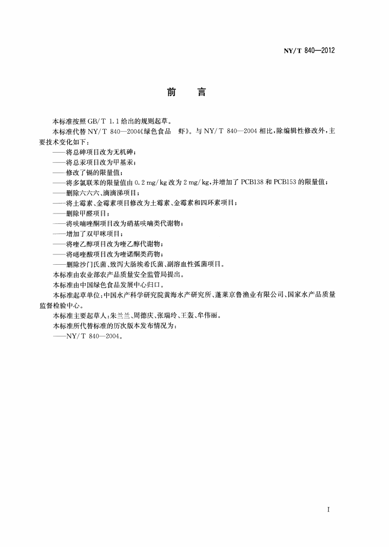 NY-T-840-2012348072@abc4个月前发布关注私信0.31MB8页027NY-T-840-2012此内容为付费资源,请付费后查看¥13¥23黄金会员免费钻石会员免费立即购买您当前未登录!建议登陆后购买,可保存购买订单付费资源 第1页 / 共8页 第2页 / 共8页 试读已结束,还剩6页,您可下载完整版后进行离线阅读 THE END标准规范 文本预览 ICs67.120.30B50NY中华人民共和国农业行业标准NY/T840-2012代替NY/T840-2004绿色食品虾Green food-Shrimp2012-12-07发布2013-03-01实施中华人民共和国农业部发布 查看更多 收起部分 喜欢就支持一下吧收藏