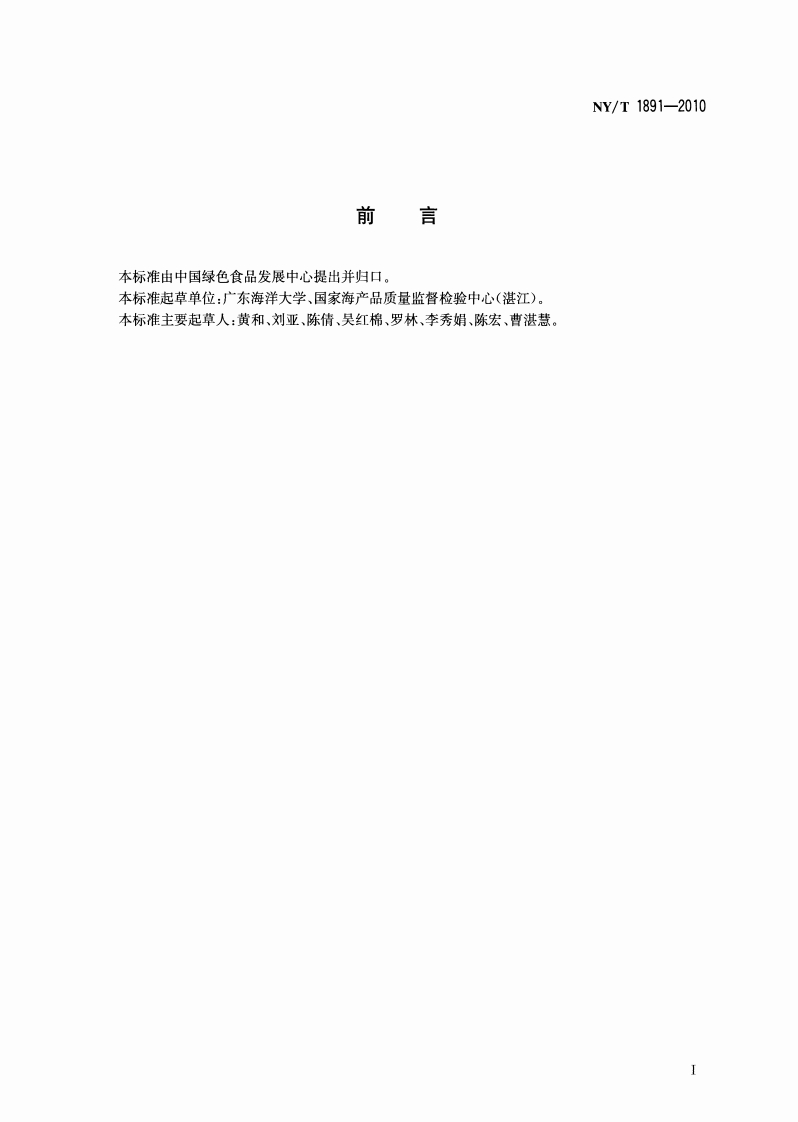 NY-T-1891-2010348072@abc4个月前发布关注私信0.31MB6页022NY-T-1891-2010此内容为付费资源,请付费后查看¥13¥23黄金会员免费钻石会员免费立即购买您当前未登录!建议登陆后购买,可保存购买订单付费资源 第1页 / 共6页 第2页 / 共6页 试读已结束,还剩4页,您可下载完整版后进行离线阅读 THE END标准规范 文本预览 ICS67.120.30X20NY中华人民共和国农业行业标准NY/T1891-2010绿色食品海洋捕捞水产品生产管理规范Green food-Manufacturing practice standard of ocean fishery products2010-05-20发布2010-09-01实施中华人民共和国农业部发布 查看更多 收起部分 喜欢就支持一下吧收藏
