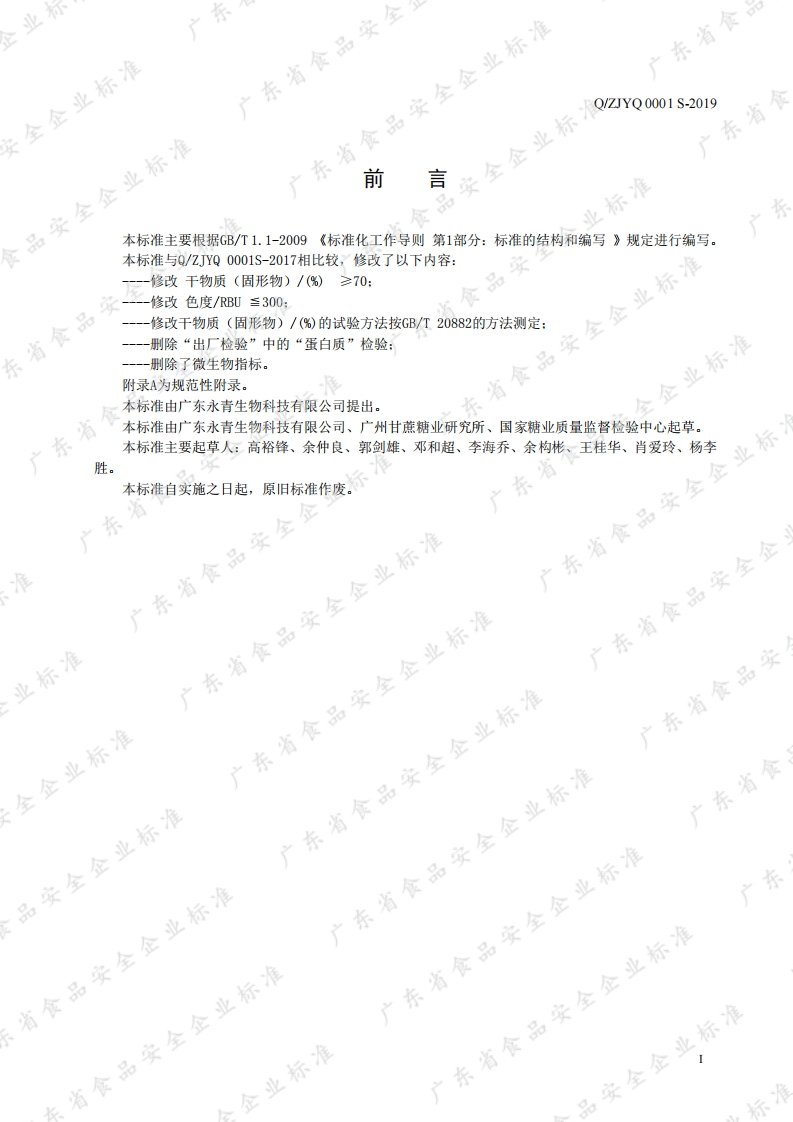 生健食品安全东省备案号44080066S-2019nO/ZJIYQ备案日期:2019年06月24日全父品安东省食品安全企业标准品安全企Q/ZJYQ0001S-2019业标准广东省食品代替Q/ZJYQ0001S-2017东省食品安全广东省食品安全企业标准标准东省食品安全企业示广东省食广东省食品安全企非淀粉型果糖浆广东省食品安全企业标准广东省食品安全企业标广东省食品安全企业标业标准广东省食品安全企业标准广东省食品安全企广东省食品安全企业标准广东省食品安全企业标准品安全企业标准广东省食品安全企业标准广东省食品安全企业标准广东省食业标准品安全企业标准东2019-04-30发布2019-05-30实施省食品广东永青生物科技有限公司发布省食品安全人企业标准广东省食品安全企业标准