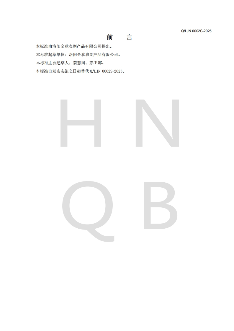 洛阳金秋农副产品有限公司企业强制性标准规范Q_LJN0002S-2025炒制芥菜丝(片)2025-01-03发布2025-01-03实施洛阳金秋农副产品有限公司发布348072@abc28天前发布关注私信0.17MB5页048洛阳金秋农副产品有限公司企业强制性标准规范Q_LJN0002S-2025炒制芥菜丝(片)2025-01-03发布2025-01-03实施洛阳金秋农副产品有限公司发布此内容为付费资源,请付费后查看¥19¥23黄金会员免费钻石会员免费立即购买您当前未登录!建议登陆后购买,可保存购买订单付费资源 第1页 / 共5页 第2页 / 共5页 试读已结束,还剩3页,您可下载完整版后进行离线阅读 THE END标准规范 喜欢就支持一下吧收藏