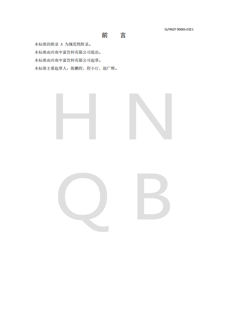 河南中富饮料有限公司企业强制性标准规范Q_HNZF0006S-2021复配发酵风味饮料2021-03-22发布2021-03-22实施河南中富饮料有限公司发布348072@abc29天前发布关注私信0.71MB14页022河南中富饮料有限公司企业强制性标准规范Q_HNZF0006S-2021复配发酵风味饮料2021-03-22发布2021-03-22实施河南中富饮料有限公司发布此内容为付费资源,请付费后查看¥19¥23黄金会员免费钻石会员免费立即购买您当前未登录!建议登陆后购买,可保存购买订单付费资源 第1页 / 共14页 第2页 / 共14页 试读已结束,还剩12页,您可下载完整版后进行离线阅读 THE END标准规范 喜欢就支持一下吧收藏