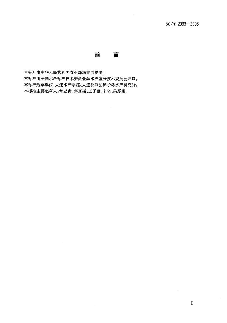 SC-T-2033-2006348072@abc6个月前发布关注私信0.16MB5页031SC-T-2033-2006此内容为付费资源,请付费后查看¥13¥23黄金会员免费钻石会员免费立即购买您当前未登录!建议登陆后购买,可保存购买订单付费资源 第1页 / 共5页 第2页 / 共5页 试读已结束,还剩3页,您可下载完整版后进行离线阅读 THE END标准规范 文本预览 ICS65.150B51SC中华人民共和国水产行业标准SCT2033-2006虾夷扇贝亲贝Japanese scallop Parent scallop2006-01-26发布2006-04-01实施中华人民共和国农业部发布 查看更多 收起部分 喜欢就支持一下吧收藏