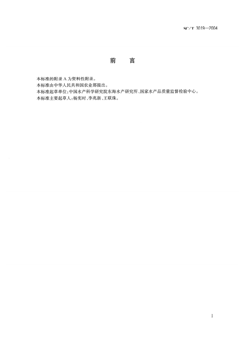 SC-T-3019-2004348072@abc4个月前发布关注私信0.51MB5页041SC-T-3019-2004此内容为付费资源,请付费后查看¥13¥23黄金会员免费钻石会员免费立即购买您当前未登录!建议登陆后购买,可保存购买订单付费资源 第1页 / 共5页 第2页 / 共5页 试读已结束,还剩3页,您可下载完整版后进行离线阅读 THE END标准规范 文本预览 ICs67.050B50SH中华人民共和国水产行业标准SC/T3019-2004水产品中喹乙醇残留量的测定液相色谱法Determination of olayuindux residues in fishery productsHigh-performance of liquid chromatography2004-01-07发布2004-03-01实施中华人民共和国农业部发布 查看更多 收起部分 喜欢就支持一下吧收藏