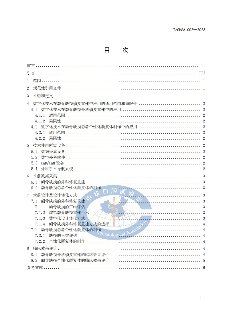 ICS11.060.01CCS Co5中华口腔医学会团体标准T/CHSA002-2023数字化技术在颌骨缺损修复重建中应用的专家共识Expert consensus on application of digital technique in jaw defect reconstruction中华口空医学会ninese Stomatological Associationl2023-05-19发布2023-06-01实施中华口腔医学会发布